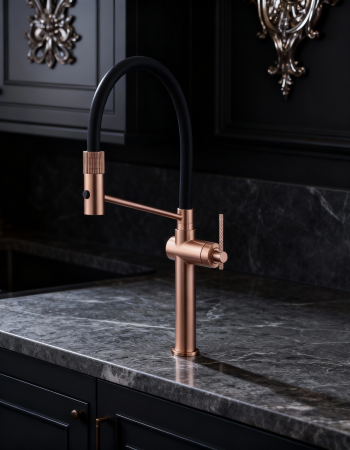 专利款304不锈钢铣纹玫瑰金厨房水龙头 (锦麟菜盆龙头)