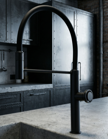 专利款304不锈钢铣纹黑色厨房水龙头 (菱悦菜盆龙头)