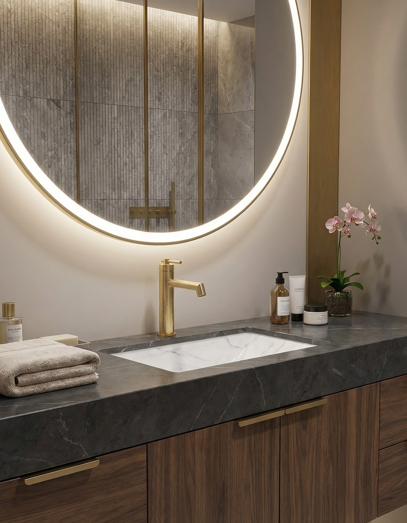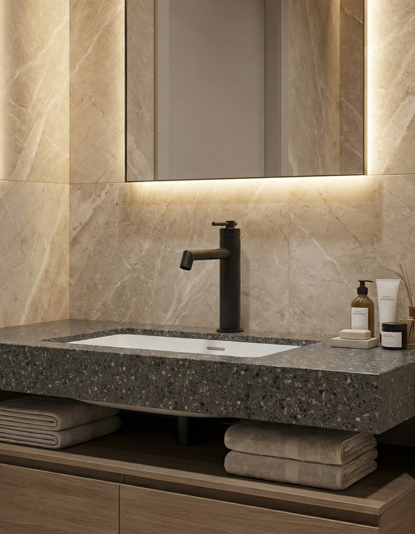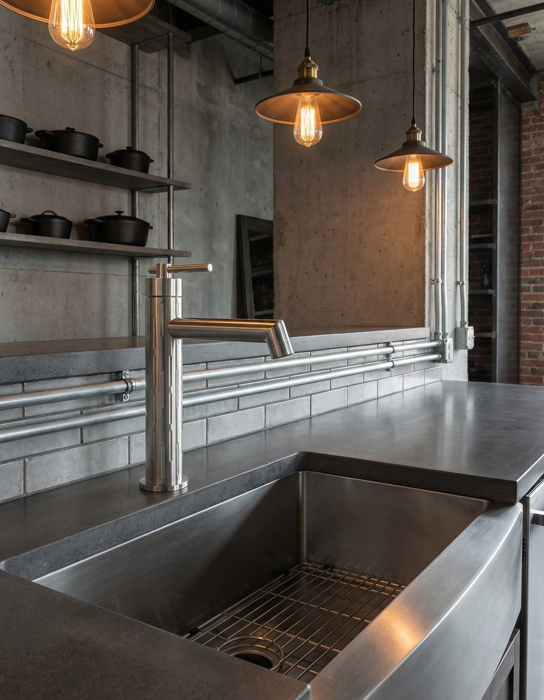 精工细「纹」 精选304不锈钢,表面独特的纵向铣纹,仿若凝聚的水滴轨迹,线条流畅,触感细腻,赋予龙头简约而富有张力的视觉表现。