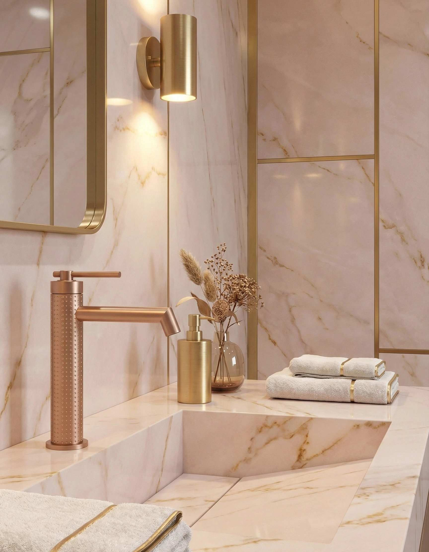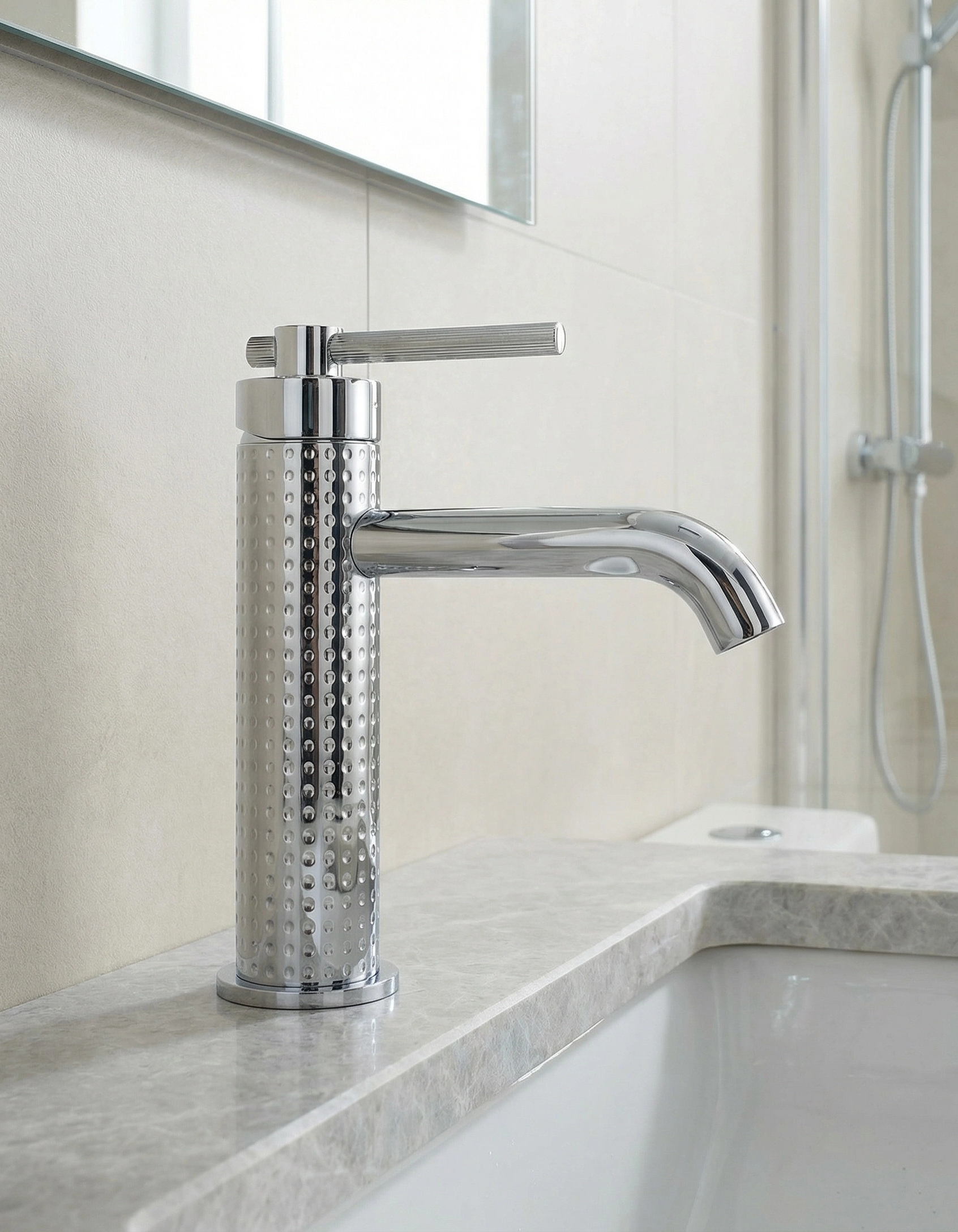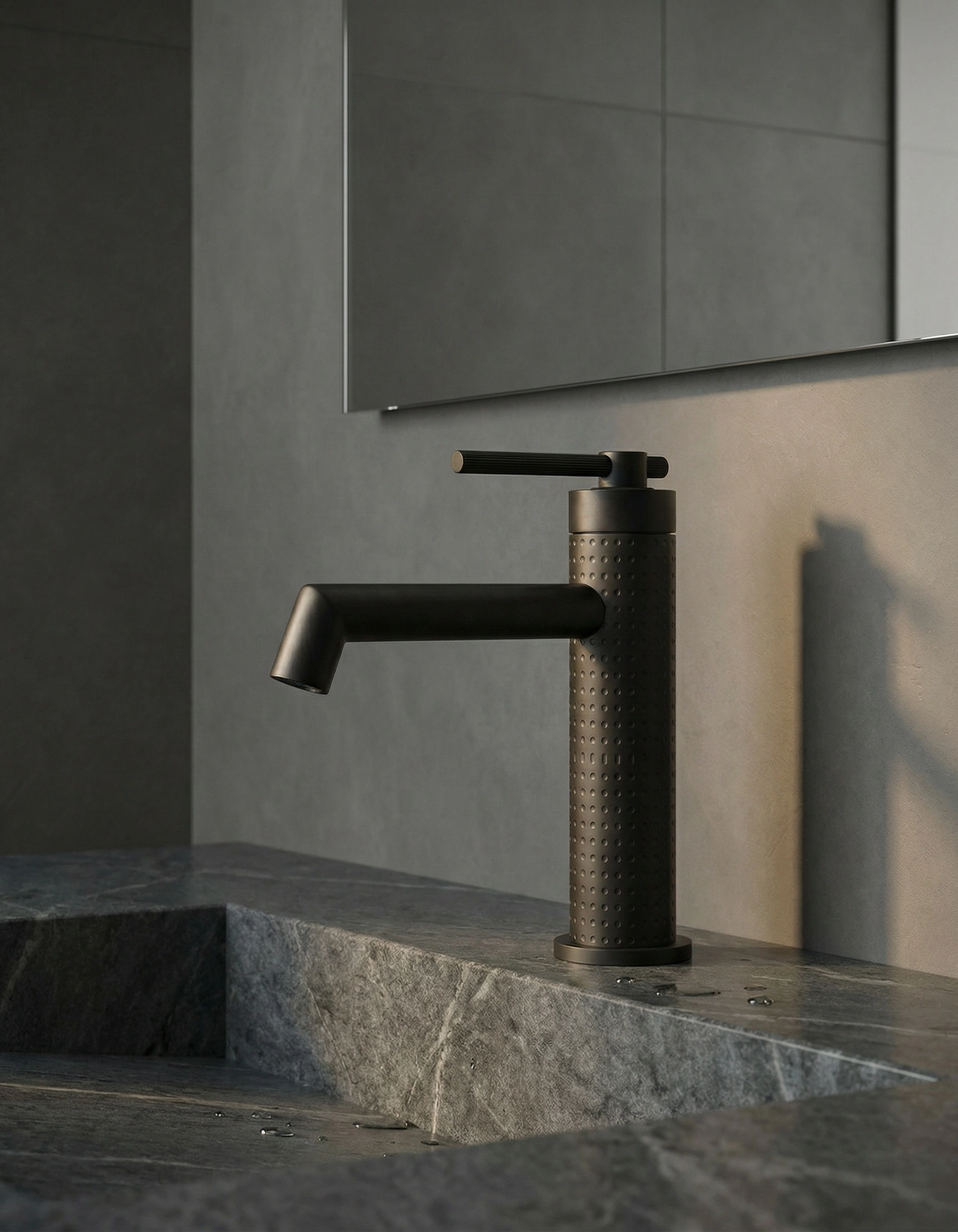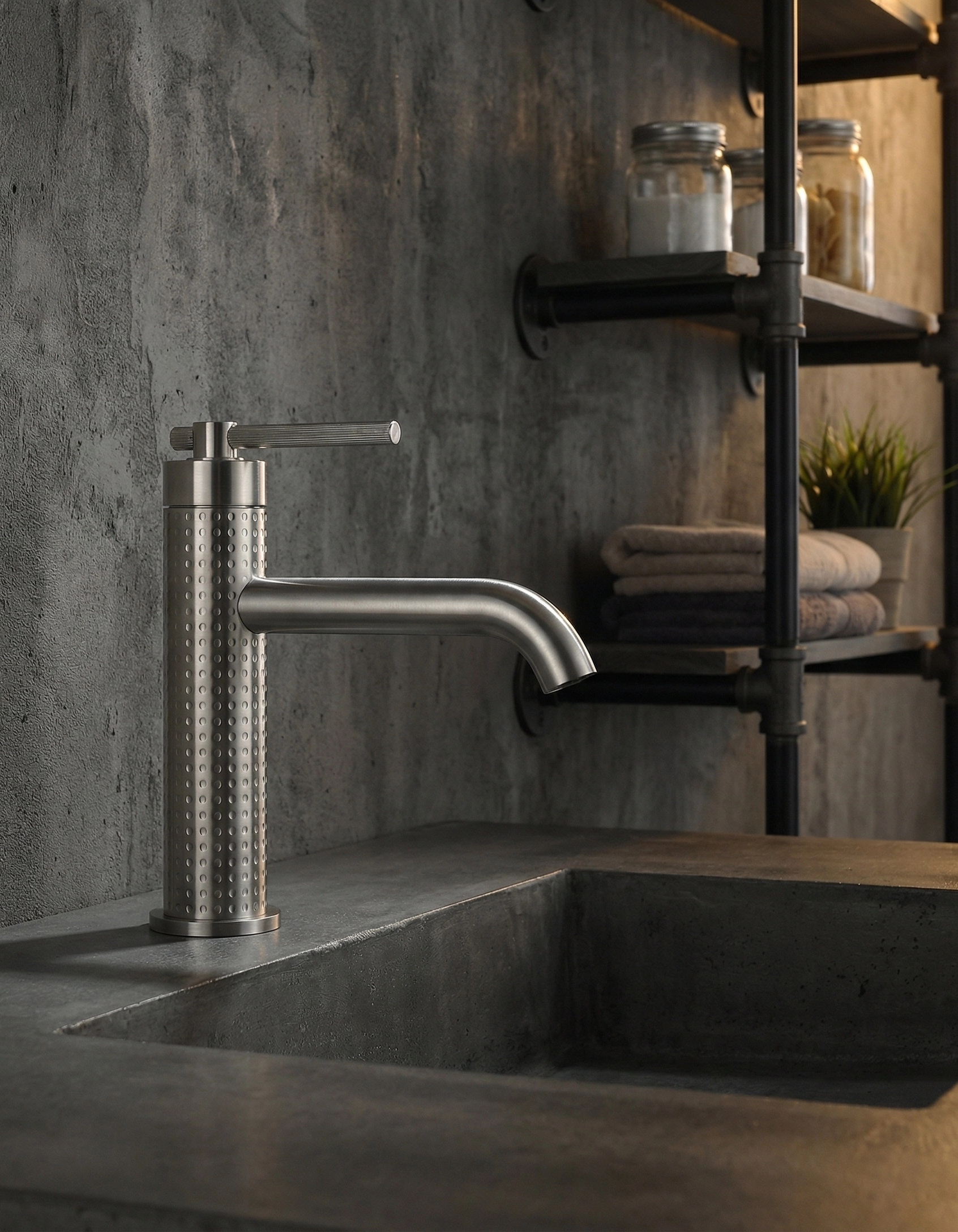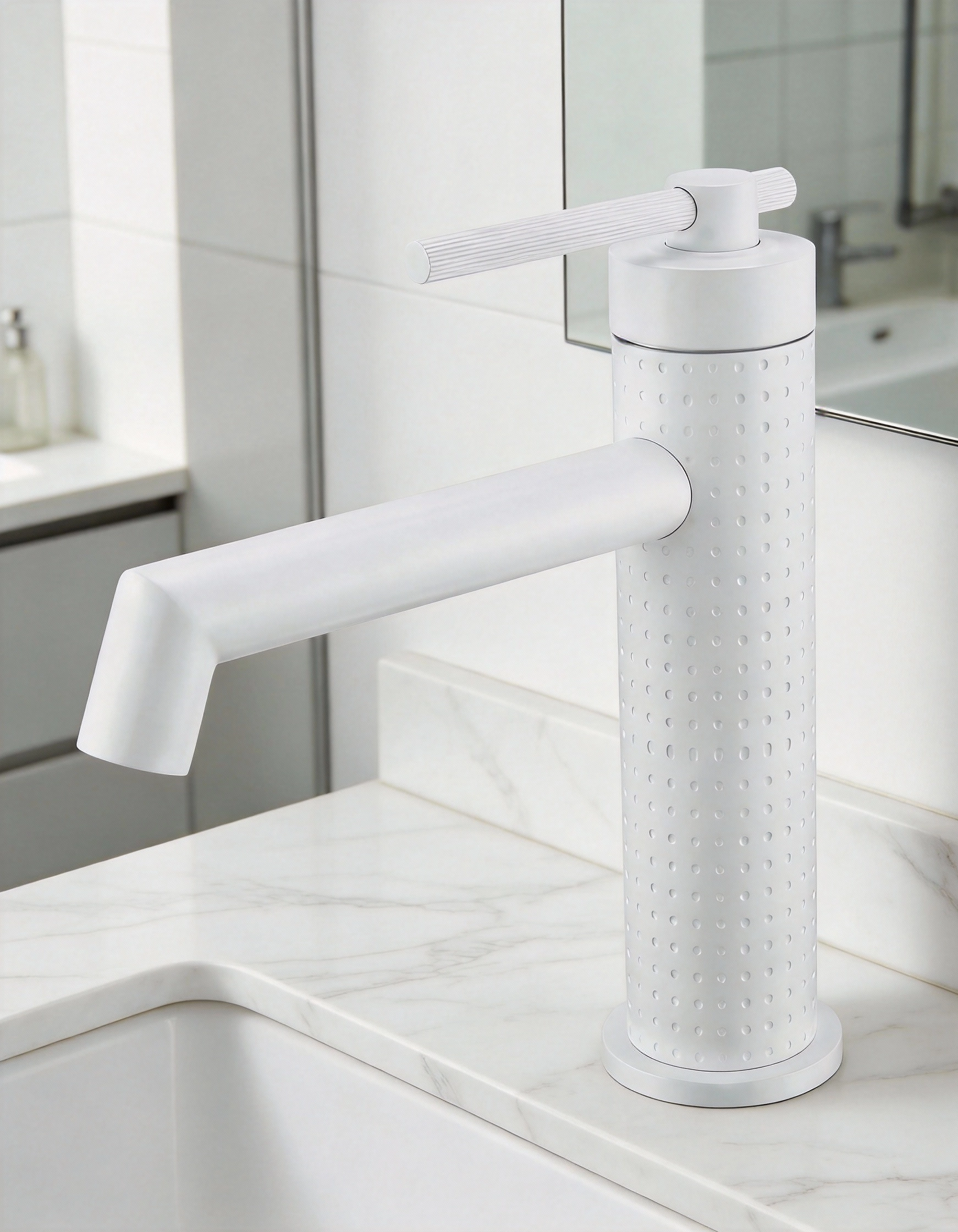 菱悦系列 · 点光集韵 精选304不锈钢,表面以精密铣点纹路织就细腻肌理。圆点匀列如星序排布,触感温润,光影流转间,为空间注入静谧而灵动的几何诗意。