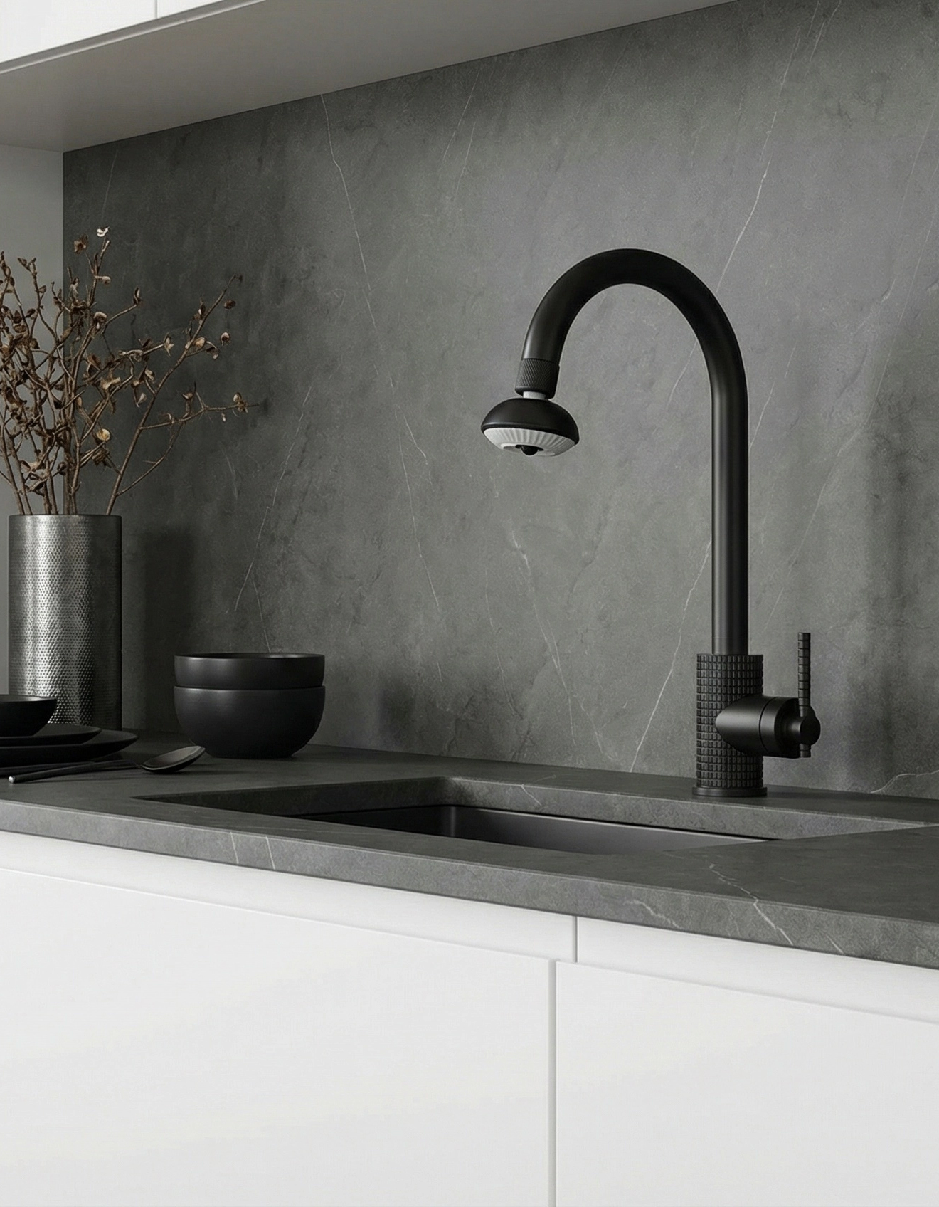 专利款304不锈钢铣纹黑色厨房水龙头 (菱悦菜盆龙头)