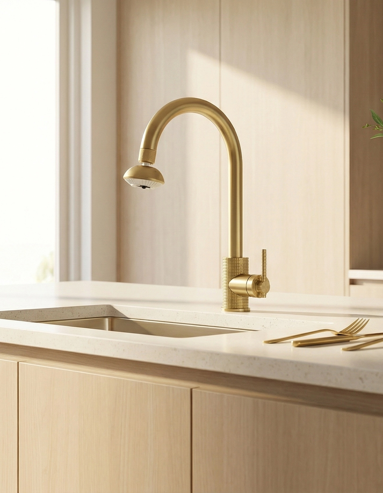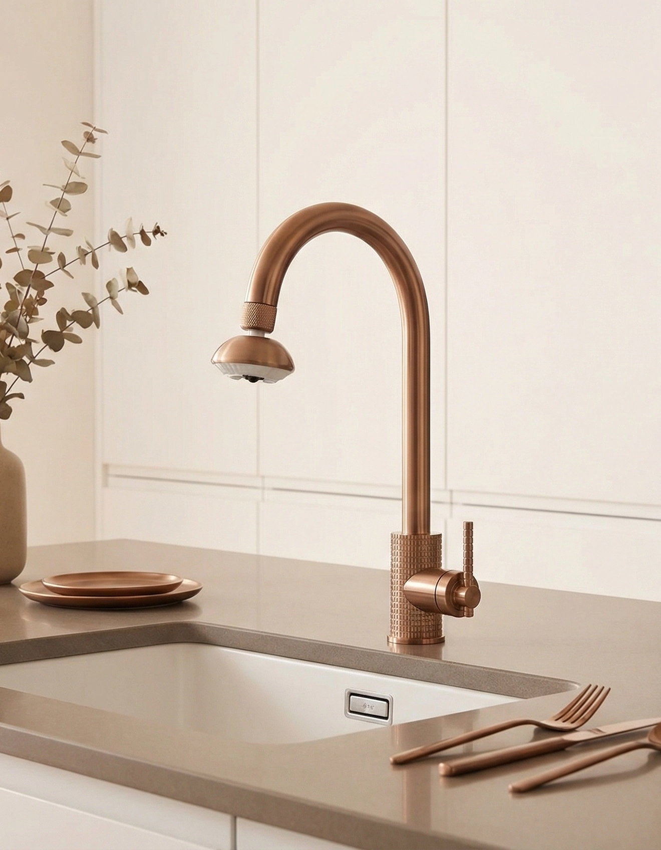 专利款304不锈钢铣纹玫瑰金厨房水龙头 (菱悦菜盆龙头)