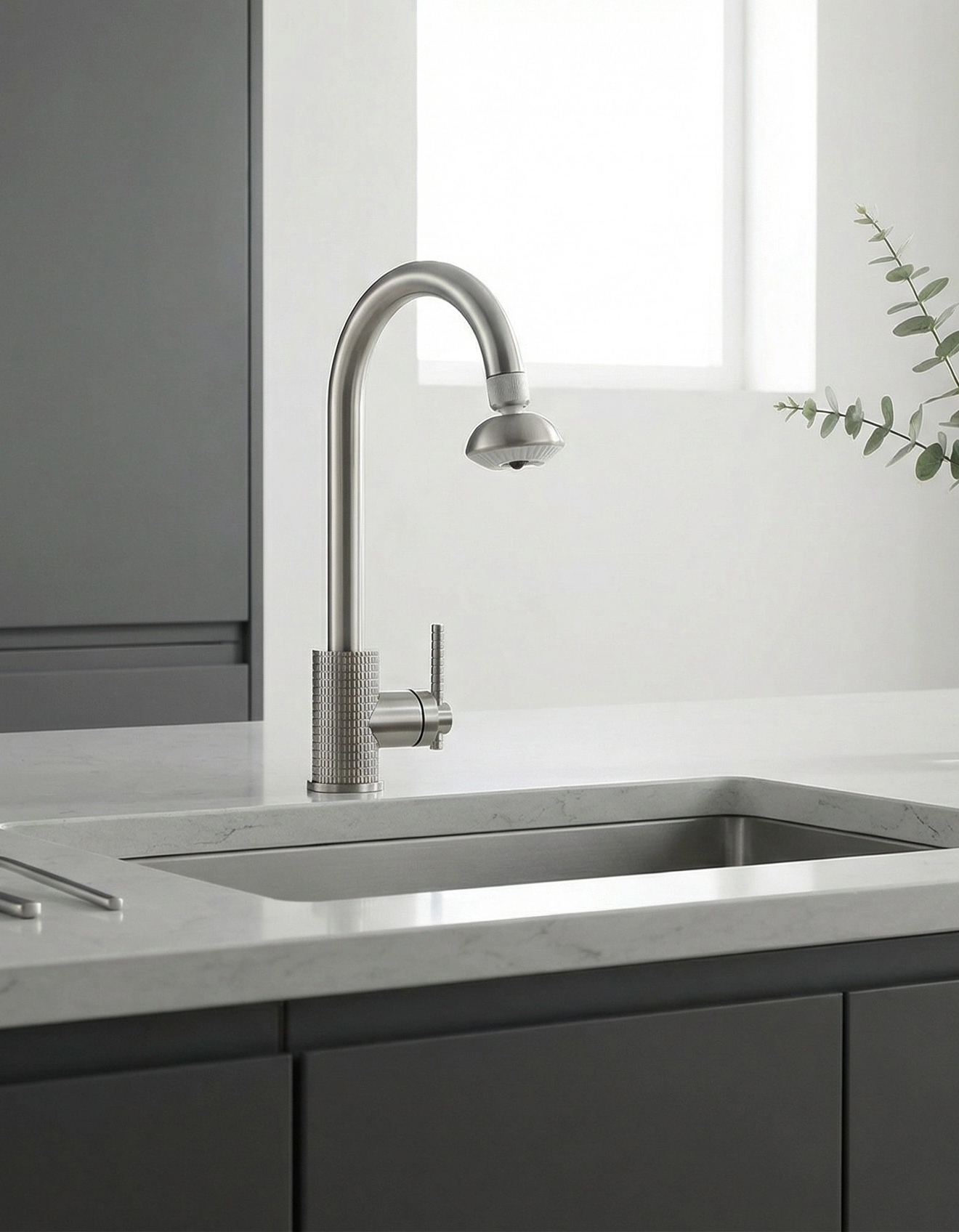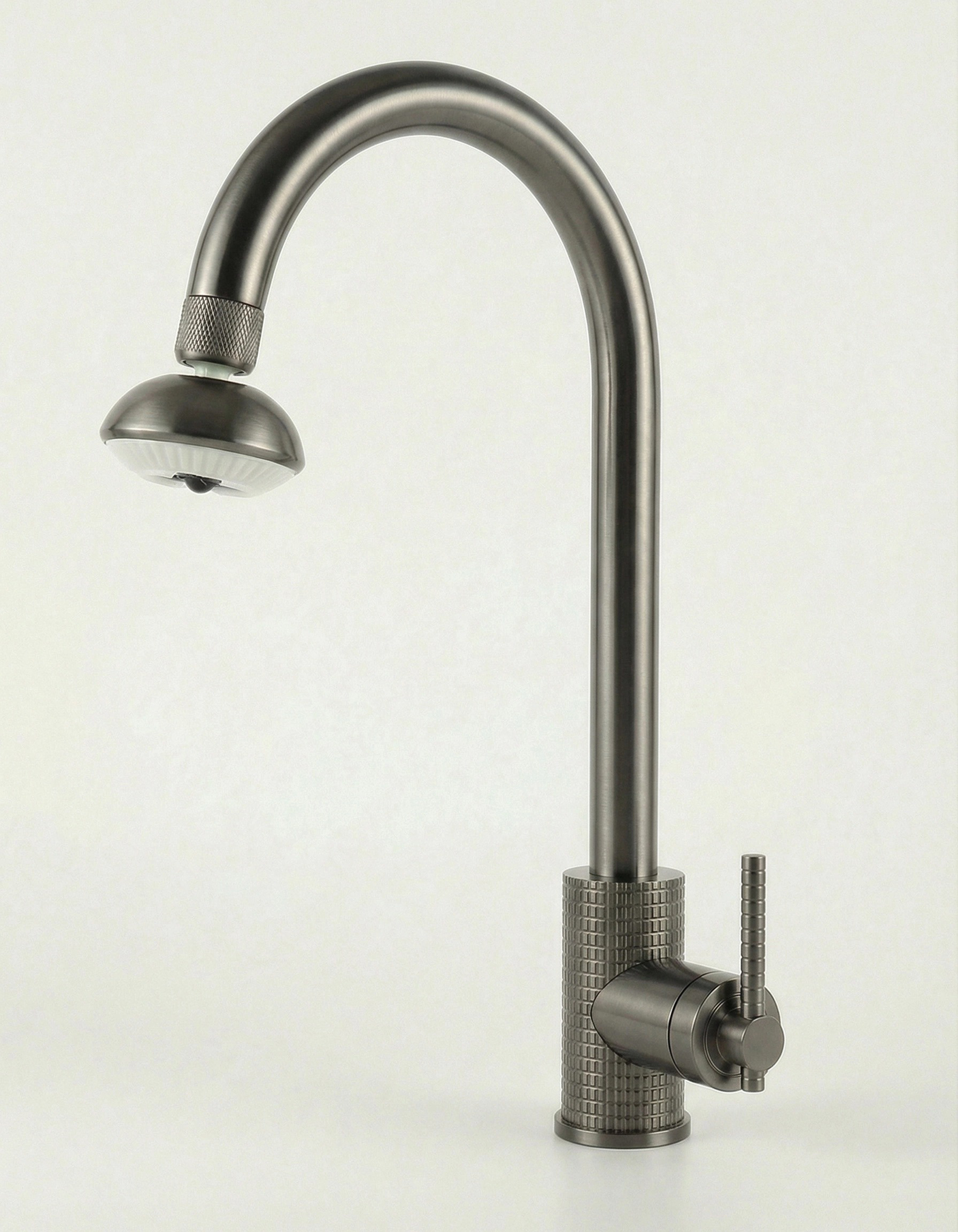专利款304不锈钢铣纹枪灰色厨房水龙头 (锦麟菜盆龙头)