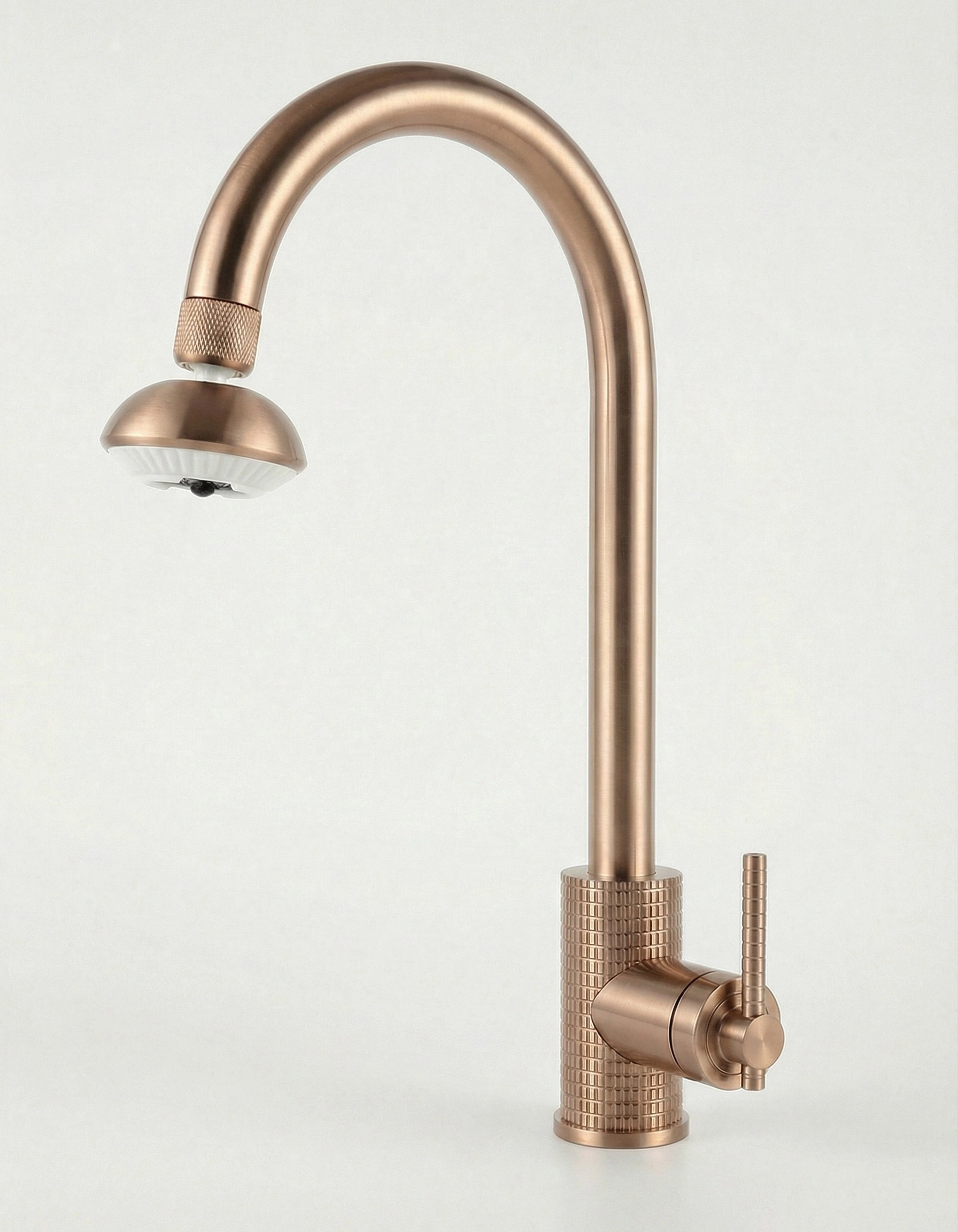 专利款304不锈钢铣纹玫瑰金厨房水龙头 (锦麟菜盆龙头)